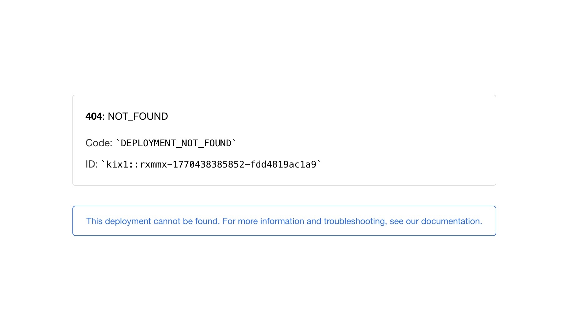 https://vercel.com/docs/errors/DEPLOYMENT_NOT_FOUND存在しないデプロイメントへのリクエストが行われた場合に発生するようです。